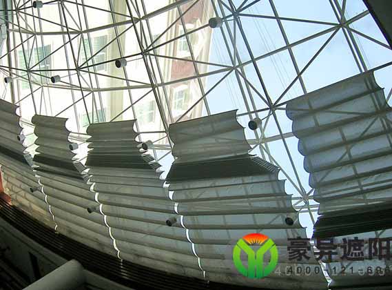 - 商场玻璃顶部采用电动天幕帘来遮阳隔热防晒-豪异遮阳